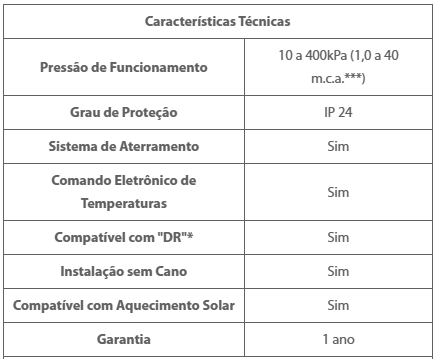 Todas as versões vêm equipadas com a resistência de alto desempenho e longa durabilidade, Loren Ultra. Com seu formato de cartucho e acesso fácil através de engate rápido, a instalação e remoção são feitas em questão de minutos. Além disso, o chuveiro conta com a tecnologia Press Plus, assegurando jatos de água potentes mesmo em situações de baixa pressão.