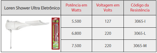 - Calcular fretePara você que busca sofisticação e qualidade, o Loren Shower Ultra é a escolha perfeita para você. Ao possuir formato quadrado, seguindo as tendências de arquitetura, a Resistência Loren Ultra integra o conceito tecnológico do produto e garante alta performance e longa duração, se comparada às resistências comuns.