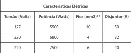 ** Para distância acima de 30m, utilizar condutores de seção maior.