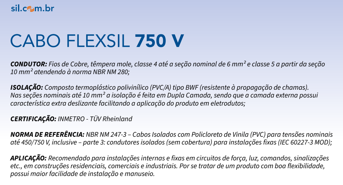 Garanta segurança, qualidade e eficiência nas suas instalações elétricas com o cabo flexível SIL 6mm². Com 100 metros de comprimento, ele é ideal para projetos residenciais, comerciais e industriais que exigem condução elétrica confiável e de alta performance.