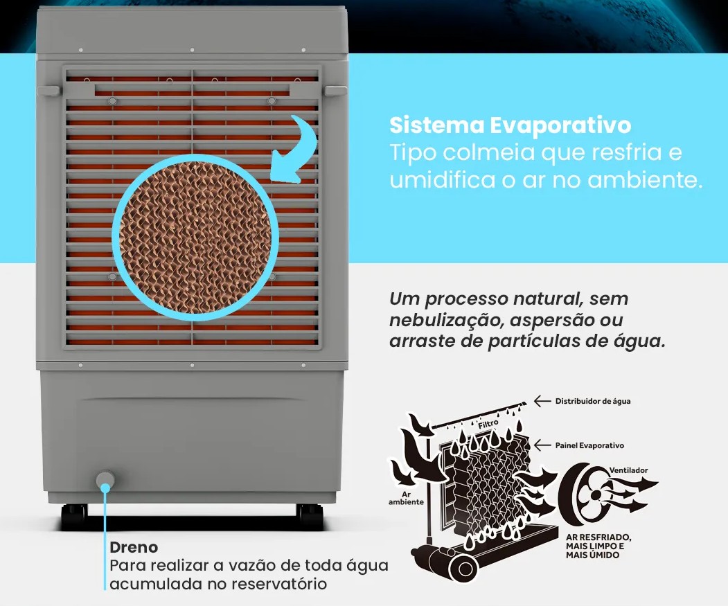 Fabricado no Brasil, o modelo combina eficiência e durabilidade, sendo perfeito para uso em residências, escritórios, lojas e outros espaços que exigem desempenho superior. Além de climatizar, o aparelho também ventila, filtra e umidifica o ar, tornando o ambiente mais agradável e saudável.
