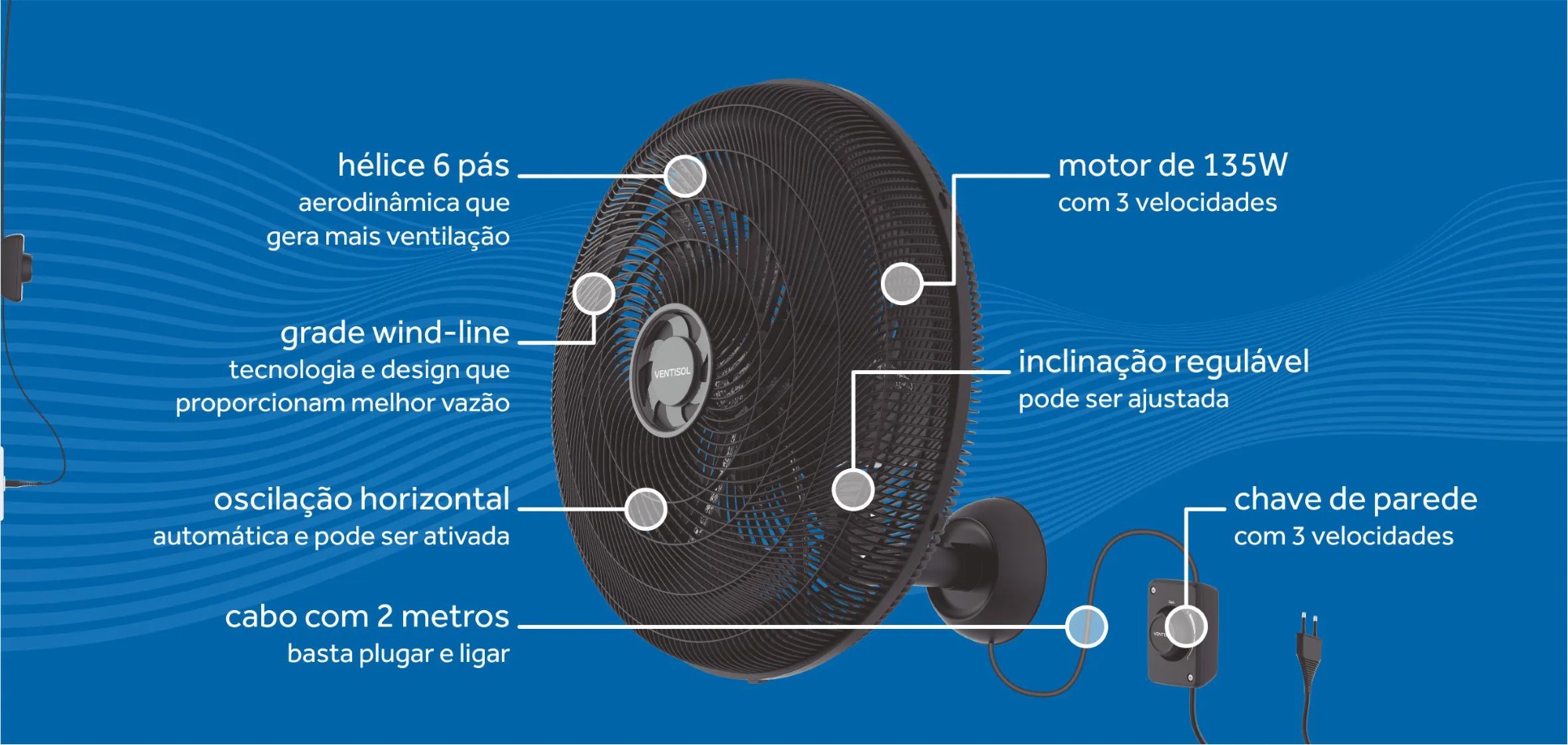 Praticidade e ventilação eficiente em um único produto. O Ventilador de Parede Ventisol 50cm Monta Fácil é ideal para quem precisa de um ventilador compacto, com boa vazão de ar e instalação simplificada. Perfeito para ambientes residenciais ou comerciais de pequeno a médio porte.